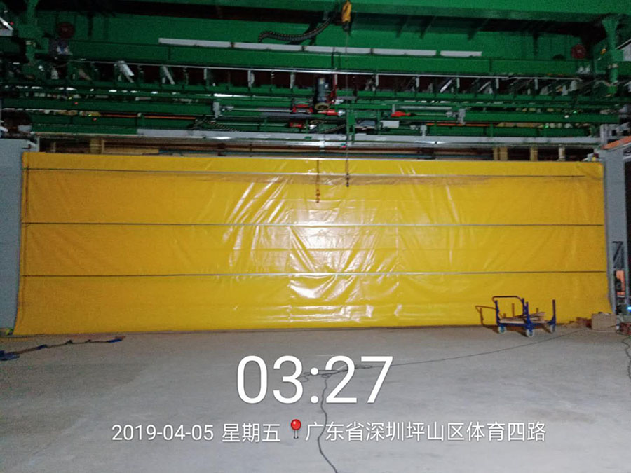 1. 柔性大門是垂直折疊提升的電動門,尺寸可依據(jù)具體門洞制作,無最大尺寸限制,可以擁有獨立自我支撐結(jié)構(gòu),其門板材質(zhì)為雙層聚纖維基布,內(nèi)嵌突出的鋼制圓管抗風(fēng)條承載基面與強大的風(fēng)壓。因此,柔性超大門適合用于特殊工業(yè)客戶的大型門洞。